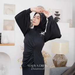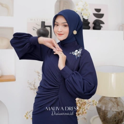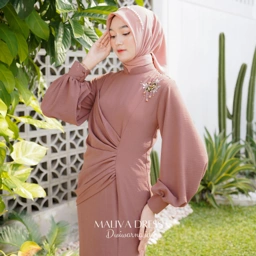 Maliva Dress Kondangan Terbaru Dwiwarna Crinkle Airflow Muslim Pesta Dewasa Remaja Payet Mutiara Gamis Wanita Mewah Lebaran Maxi Panjang